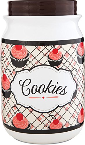 PAVILION GIFT COMPANY 49036 YOU AND ME BY JESSIE STEELE CERAMIC COOKIE JAR, 9-INCH, CHERRY CUPCAKE