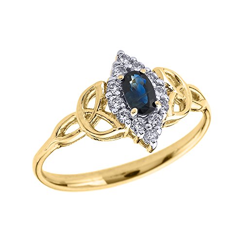 -. Feature : Oval Sapphire and Diamond Trinity Knot Proposal Ring / expertly handmade with genuine 10k yellow gold in fine polished finish / comes with free special jewelry gift box / made in the USA yet offered at factory direct jewelry P.R.Ice / ships directly from the manufacturer to the customers