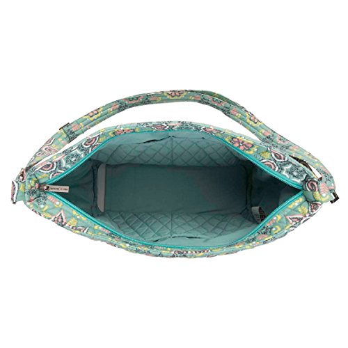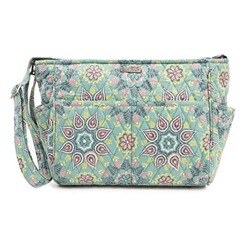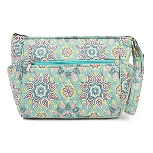 With nine pockets and room to spare without being oversized, the Luna Metro Crossbody is great for holding it all while looking stylish. A refreshingly modern expression of floral, Luna showcases dusty turquoise, indigo, baby pink, chartreuse, and creme. FEATURES • 4 inside slip pockets • 4 slip, 1 zip outside pockets • Refreshing modern floral print in dusty turquoise, indigo, baby pink, chartreuse, and creme • Diamond quilting pattern • Lined in dusty turquoise poly cotton fabric • Cotton self-fabric trim and strap • Inside base features removable plastic insert • Pewter hardware • Machine quilted • Single fabric SPECIFICATIONS • Dimensions: 15.25" opening, H10" Base: W12"xD4" • Weight: .9 lb • Material: 100% cotton shell • Colors: dusty turquoise, indigo, baby pink • Straps: 1 strap 53"x1", adjustable shoulder drop • Manufacturer Country: India CARE • Spot clean only, no chlorine bleach.Feature