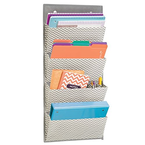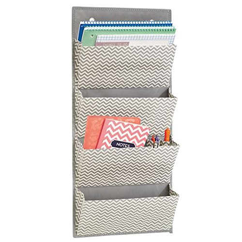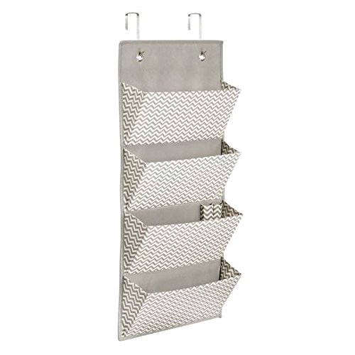 mDesign Over the Door Fabric Office Supplies Storage Organizer for Notebooks, Planners, File Folders - 4 Pockets, Taupe/Natural
