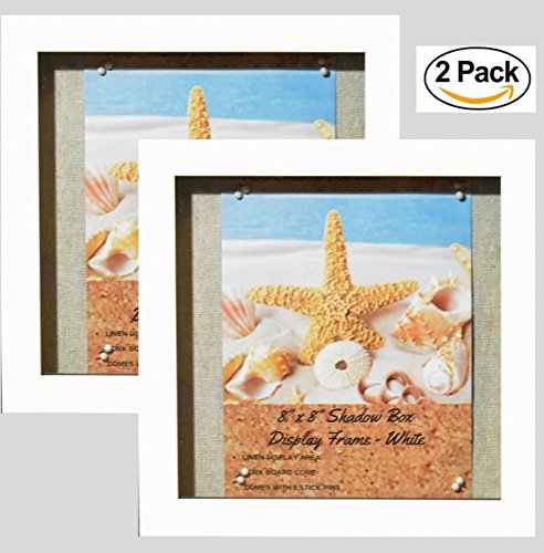 8x8” White Display Shadow Box Frame (2-pack) with Linen Background - Ready To Hang Shadowbox Picture Frame - Easy to Use - Box Display, Baby and Sports Memorabilia, Uniforms, Medals, Pins, Wedding.