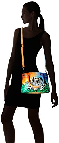 Top zip entry to main compartment. Inside one zippered wall pocket, two multipurpose pockets. Front pocket with magnetic button. Rear zippered pocket, slip in pocket. Default rope handle with drop of 5.5 detachable adjustable handle with 26” . 11 x 8.5 x 3