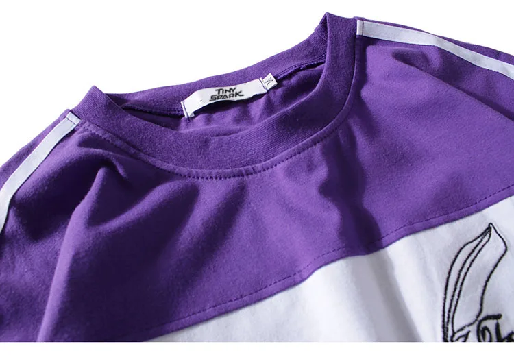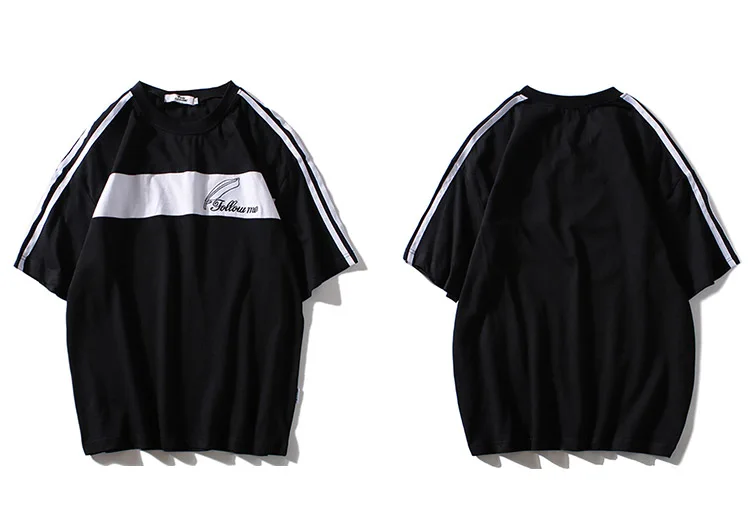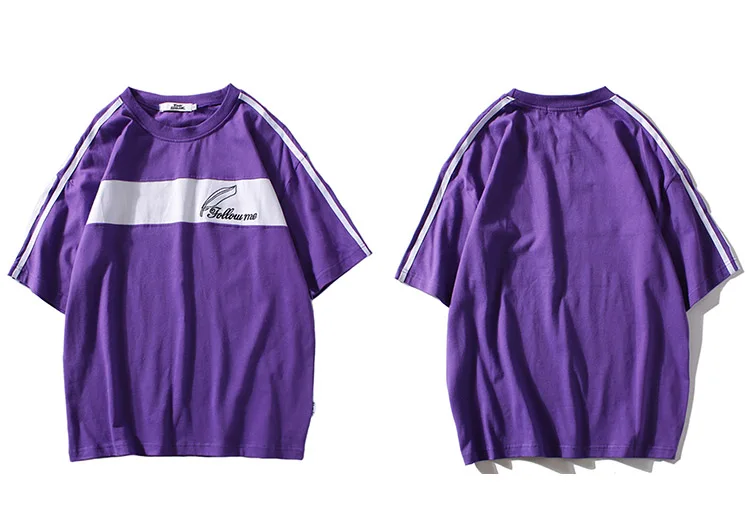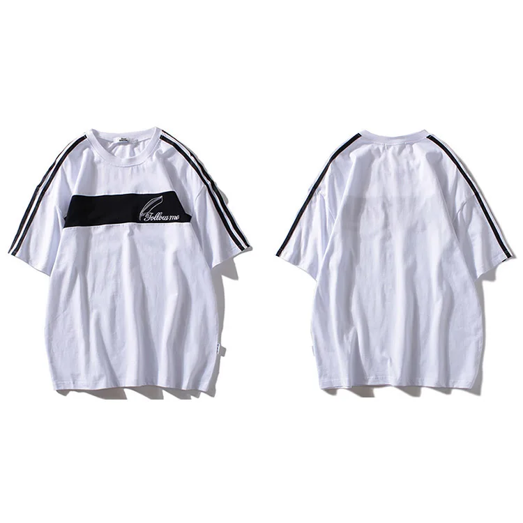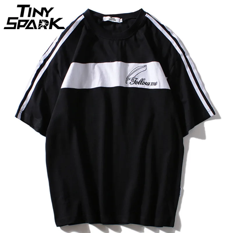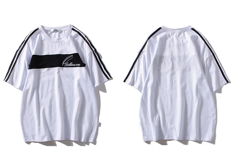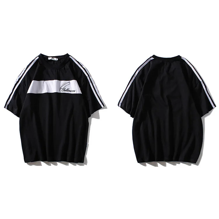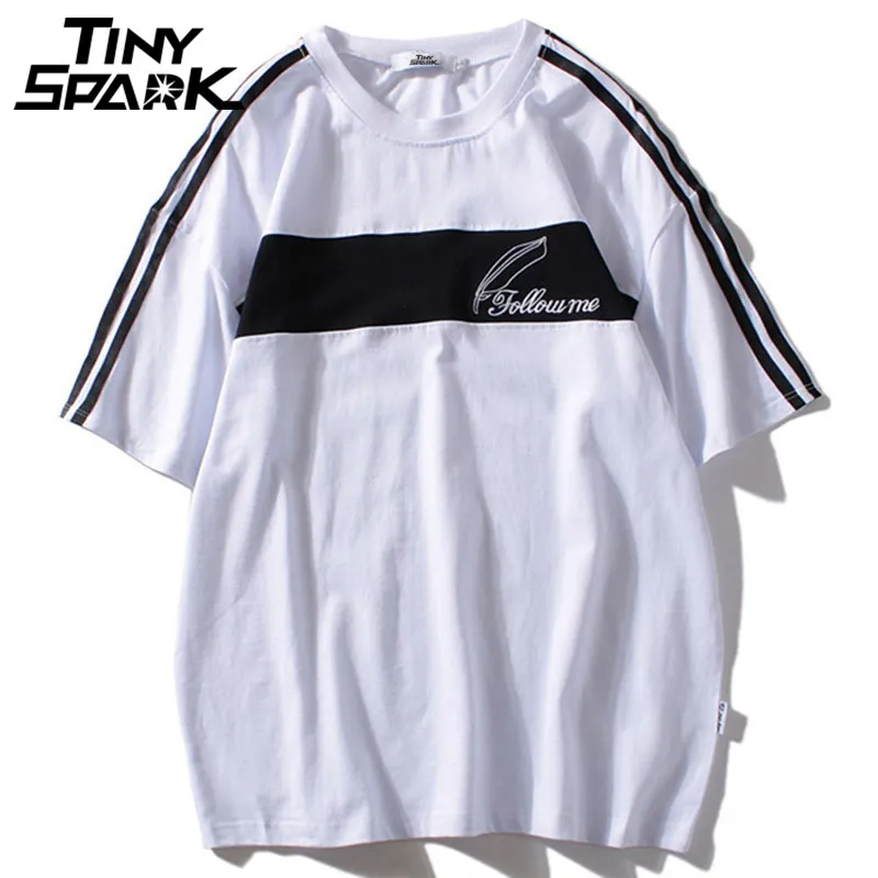 Item:Patchwork T-Shirts Mens Side Striped Tshirt Streetwear Short Sleeve