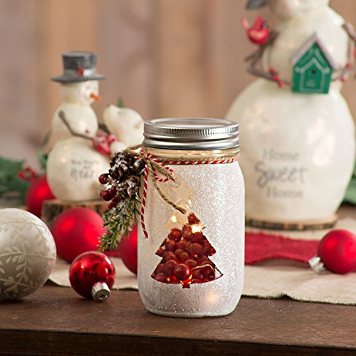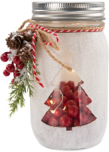 Berry and Bright LED Lite Mason Jar Light up White Sparkly Christmas Tree