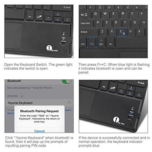 1byone Ultra-Slim Wireless Bluetooth Keyboard with Built-in Multi-touch Touchpad and Rechargeable Battery for Android and Windows, Black B00VRC6U2C