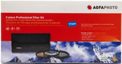 AGFA 3-Piece Professional Filter Kit 77mm - Ultraviolet (UV) + Circular Polarizor (CPL) + Warming Intensifier APFTK77