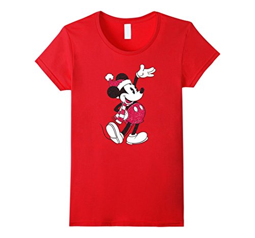 Womens Disney Mickey Mouse Christmas Greeting T Shirt Small Red