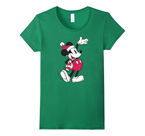 Womens Disney Mickey Mouse Christmas Greeting T Shirt Small Kelly Green