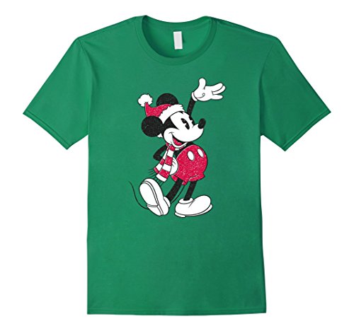 Mens Disney Mickey Mouse Christmas Greeting T Shirt Small Kelly Green