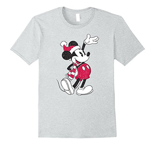 Mens Disney Mickey Mouse Christmas Greeting T Shirt Small Heather Grey