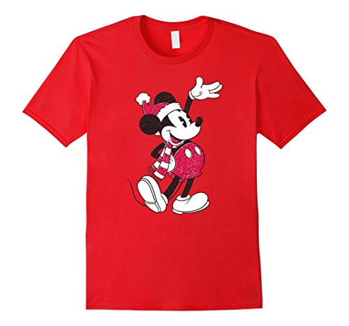 Mens Disney Mickey Mouse Christmas Greeting T Shirt Small Red