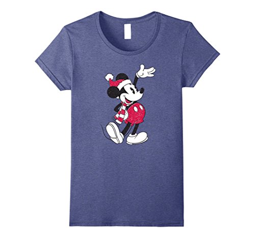 Womens Disney Mickey Mouse Christmas Greeting T Shirt Small Heather Blue