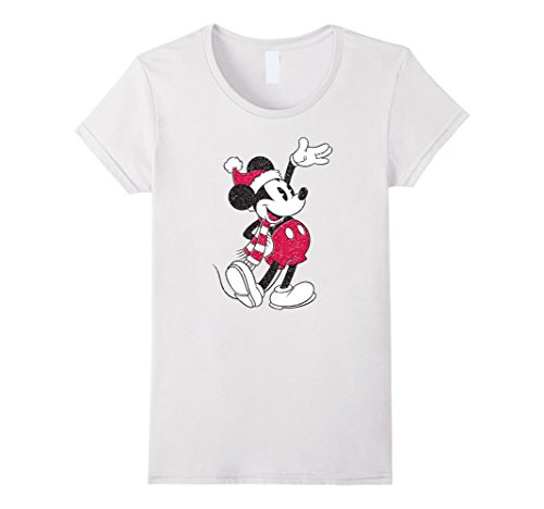 Womens Disney Mickey Mouse Christmas Greeting T Shirt Small White