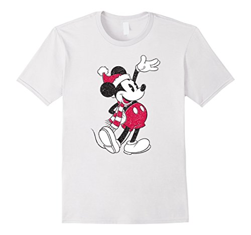 Mens Disney Mickey Mouse Christmas Greeting T Shirt Small White