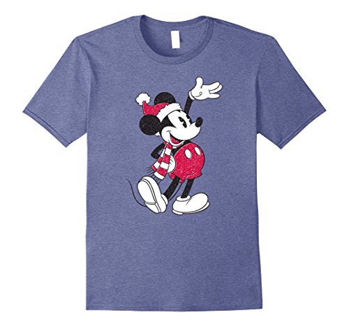 Mens Disney Mickey Mouse Christmas Greeting T Shirt Large Heather Blue