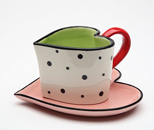 -. Brand : Cosmos Gifts -. Color : Pink -. EAN : 0752593003844 -. Feature : Exquisitely detailed. Makes for a great gift or an excellent complement to your décor / Great Ceramic Craftmanship / Colorful and unique / Comes packaged in a sturdy gift box -. Label : Cosmos Gifts -. Manufacturer : Cosmos Gifts -. ProductGroup : Kitchen -. ProductTypeName : KITCHEN -. Publisher : Cosmos Gifts -. Studio : Cosmos Gifts -. Title : Cosmos Gifts 62368 Polka Dotted Heart Shape Cup and Saucer -. UPC : 752593003844