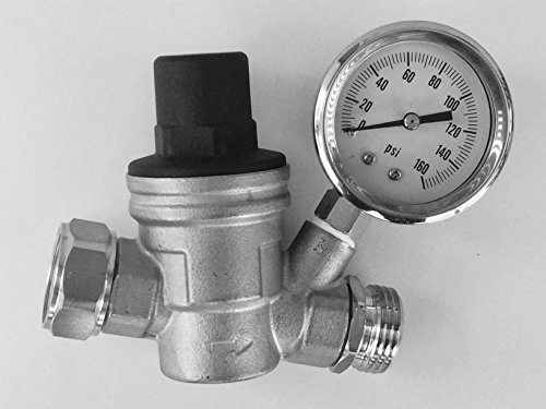 Water Pressure Regulator. Stainless Steel Lead-free Adjustable Water Pressure Reducer for RV with Gauge. Includes Inlet Screened Filter. Model A01-1117SS