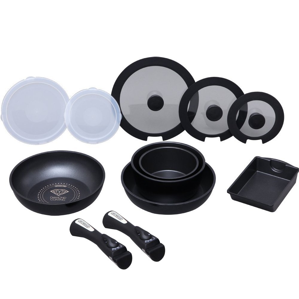 Because the handle can be taken, you can cook, dining table, store it with this one, and it's easy to store.