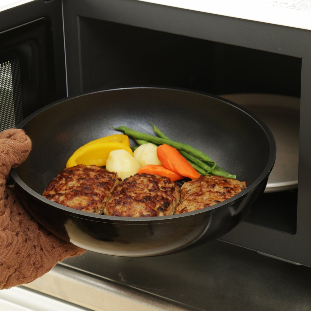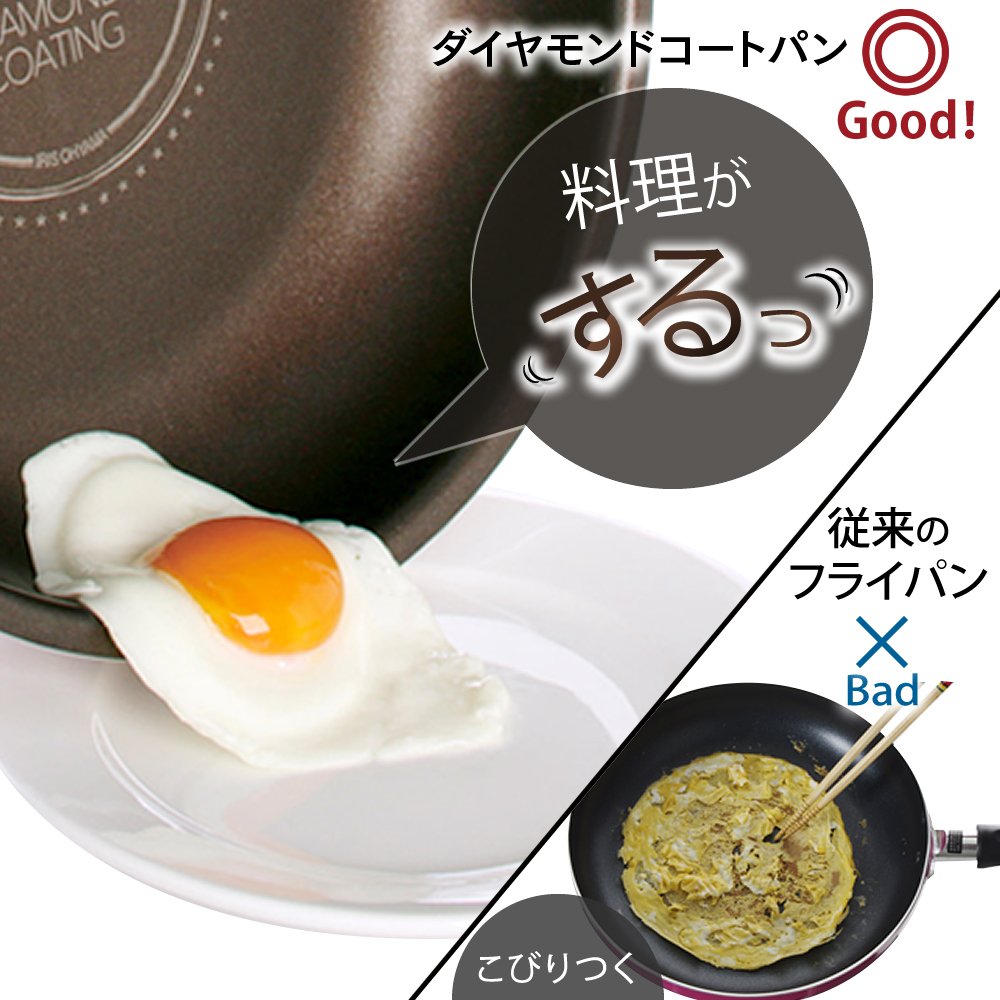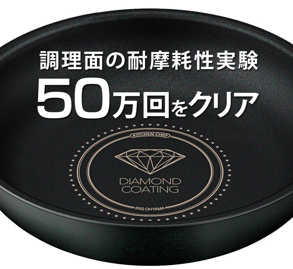 It uses diamond coating, it is hard to stick, it is durable and long lasting IH compatible frying pan set.