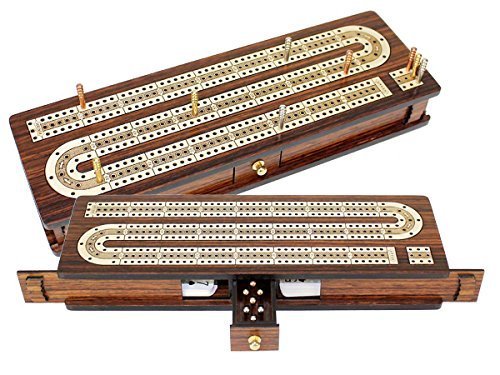 -. Binding : Toy -. Brand : House of Cribbage -. EAN : 0788430980030 -. Feature : Type: Continuous 120 points | Tracks: 3 Tracks (3 Players) / Board Wood: Rosewood | Inlay Wood: White Maple / Board Size: 12.5" | No. of Pegs included: 9 | Velvet Cover included / Type of Pegs: 3 Gold, 3 Silver & 3 Copper Plated Metal Pegs / Playing Cards not included (where ever shown in the images) -. IsAdultProduct : 0 -. Label : Pleasant Times -. Manufacturer : Pleasant Times -. MPN : 21-12-SL-RW-3T-120 -. PackageQuantity : 1 -. PartNumber : 21-12-SL-RW-3T-120 -. ProductGroup : Toy -. ProductTypeName : TOYS_AND_GAMES -. Publisher : Pleasant Times -. Studio : Pleasant Times -. Title : House of Cribbage - Continuous Cribbage Board / Box Inlaid in Rosewood / Maple 12" - 3 Tracks - Sliding Lid Drawer -. UPC : 788430980030