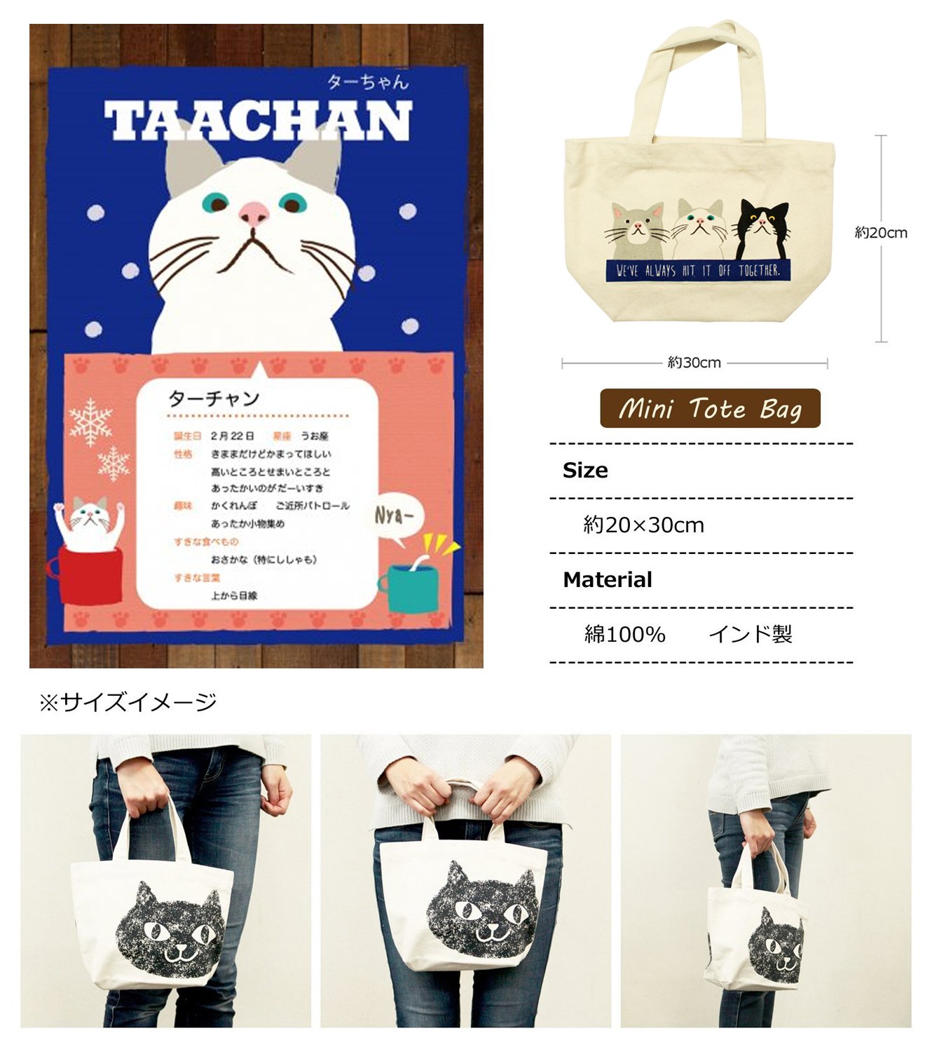 Tote bag Tha Chang Friends mini Natural 20 × 30cm BS-615-138