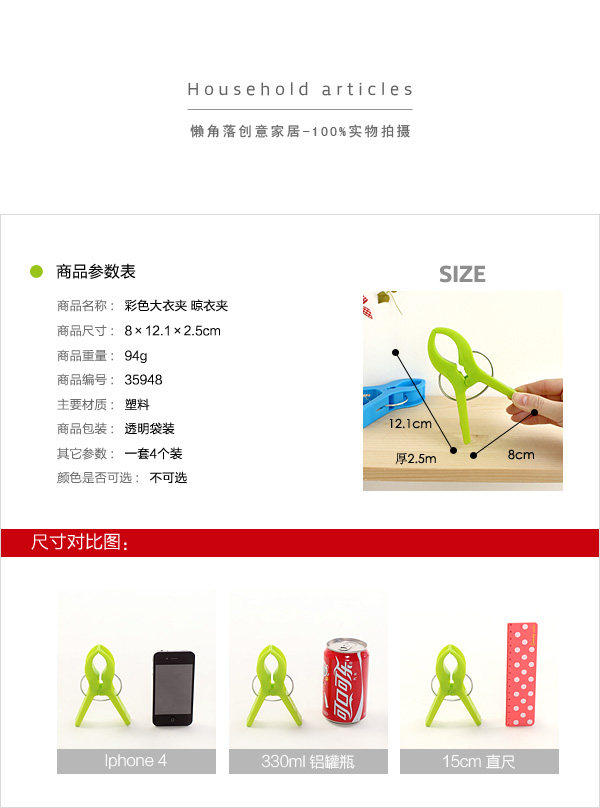 (3套12个) 防风夹晒棉被子夹 塑料晾衣夹加厚晒衣服夹 固定毛毯大夹子四支装