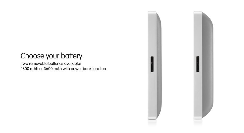 * Battery: Two options: a. 1800 mAh removable battery ; b. 3600 mAh removable battery with power bank function
