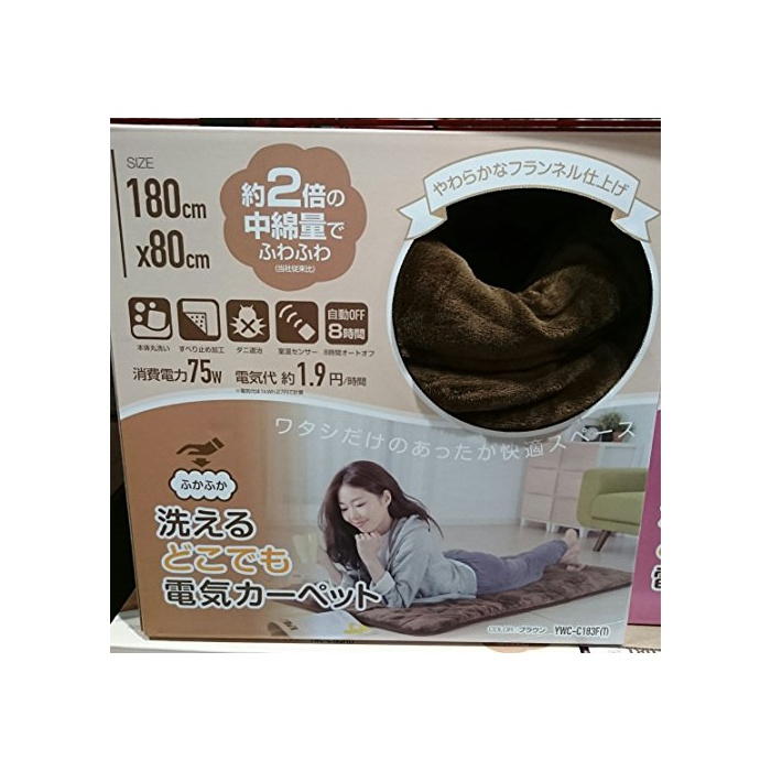 원본상품명: 山善 YAMAZEN ふかふか 洗えるどこでも電カペット(幅80×長さ180cm) YWC-C182F(T) ブラウン