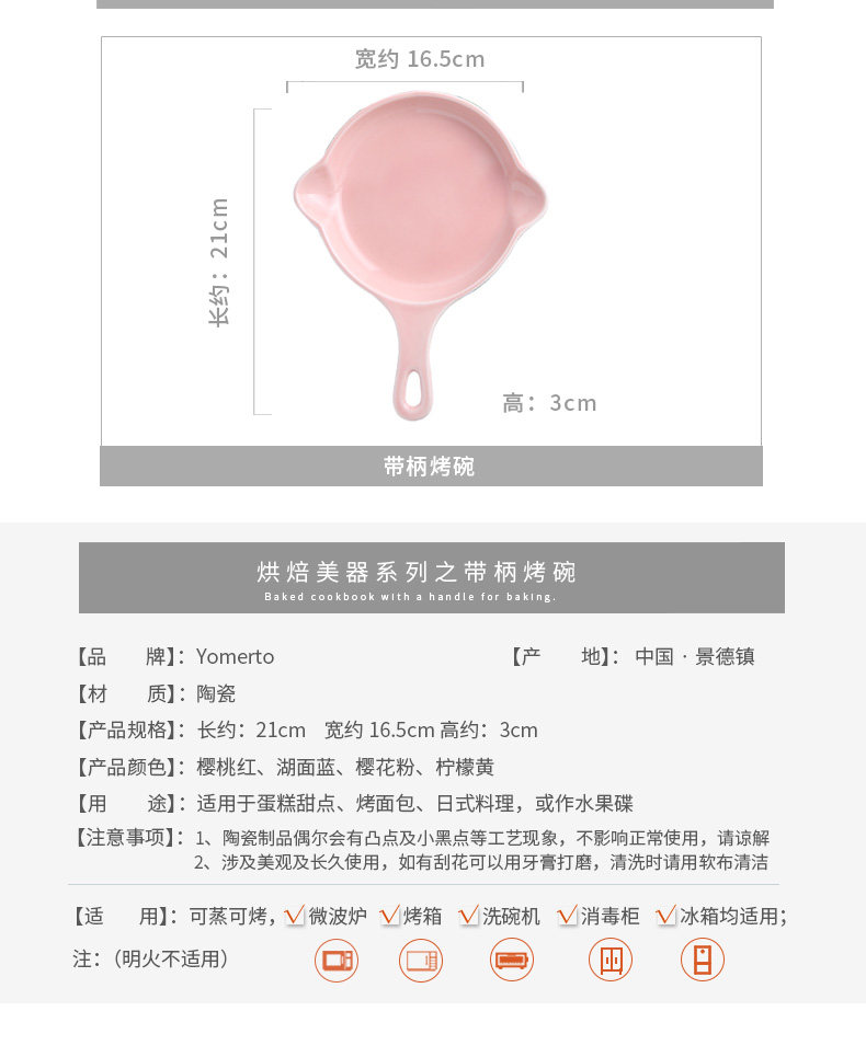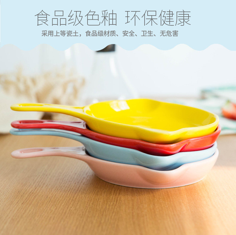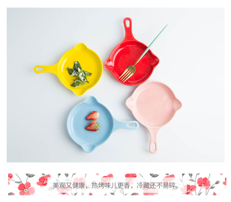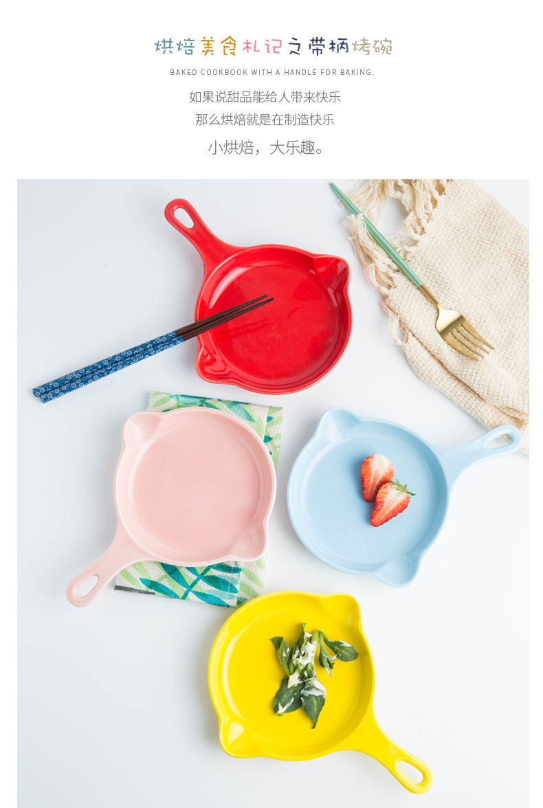 日式带手柄烤盘陶瓷马卡龙色芝士焗饭盘烘焙烤碗烤箱家用