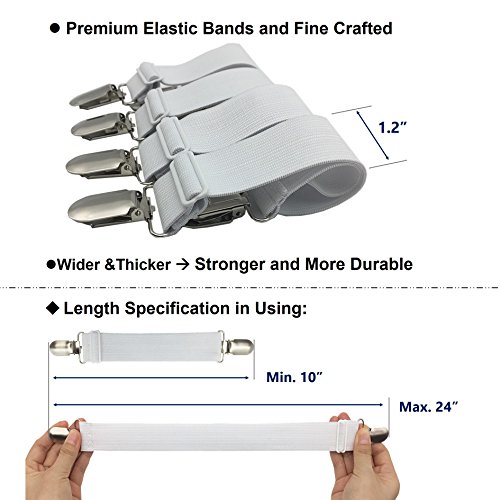 MULTIPURPOSE: These Versatile Bed Sheet Grippers Work with All Types of Bedding; High Quality and Eco-friendly Elastic Nylon Straps for Simple Bedside Installation