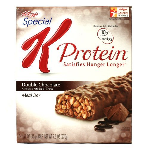 -. Binding : Health and Beauty -. Brand : Kellogg's -. EAN : 0038000291791 -. Feature : The Special K Protein way to stay on track and help manage your weight loss goals. 10 g of Protein. Naturally and artificially flavored. Exchange: 1.5 carbohydrate, 1 fat, 1 lean protein. -. Label : Kellogg's -. Manufacturer : Kellogg's -. PackageQuantity : 2 -. ProductGroup : Health and Beauty -. ProductTypeName : HEALTH_PERSONAL_CARE -. Publisher : Kellogg's -. Studio : Kellogg's -. Title : Kellogg's Special K Protein Meal Replacement Bar, Double Chocolate - Box of 6, 2 Pack -. UPC : 038000291791
