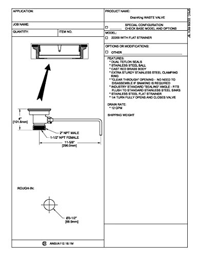 Fisher 22209 DrainKing Waste Valve, with Flat Strainer, 12 GPM Drain Rate