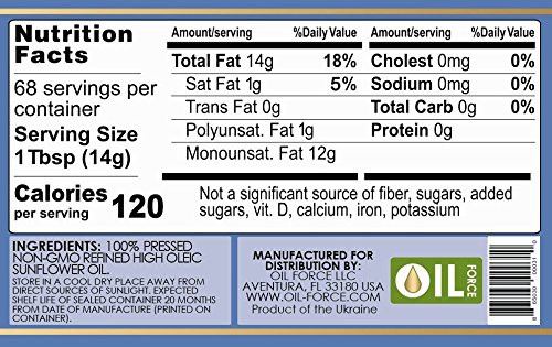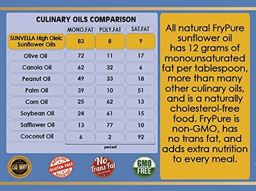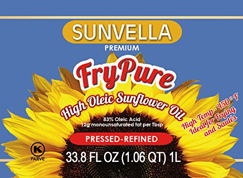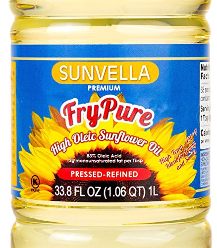 SUNVELLA FryPure High Oleic Sunflower Oil - Non-GMO, Refined, best for Frying, Baking and Cooking Healthier Cuisine 33.8 Fl Oz (1.06 QT) 1L