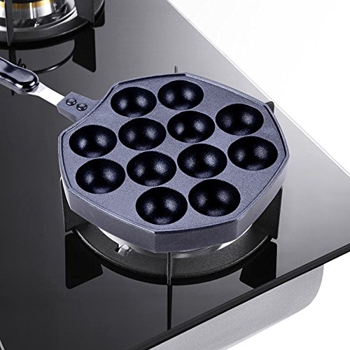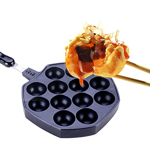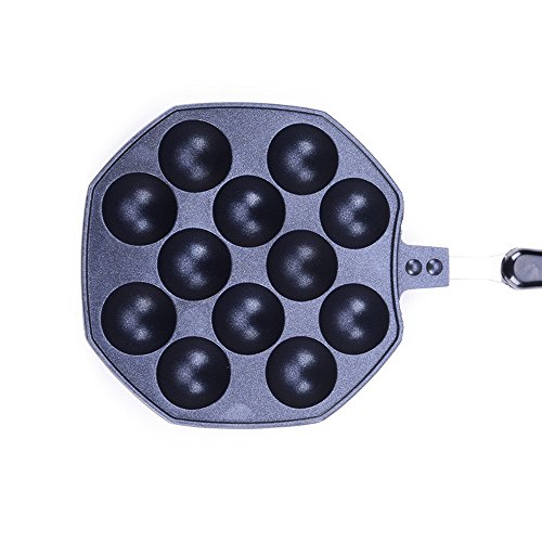 Pan makes 12 Takoyaki measuring 14 inches/35.5cm. diameter 1.6 inches/4cm deep.