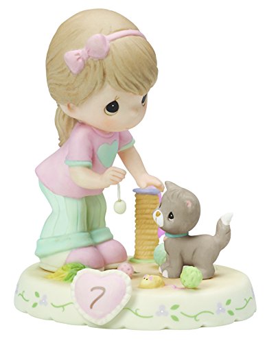 Precious Moments, Growing In Grace, Age 7, Bisque Porcelain Figurine, Brunette Girl, 154034B