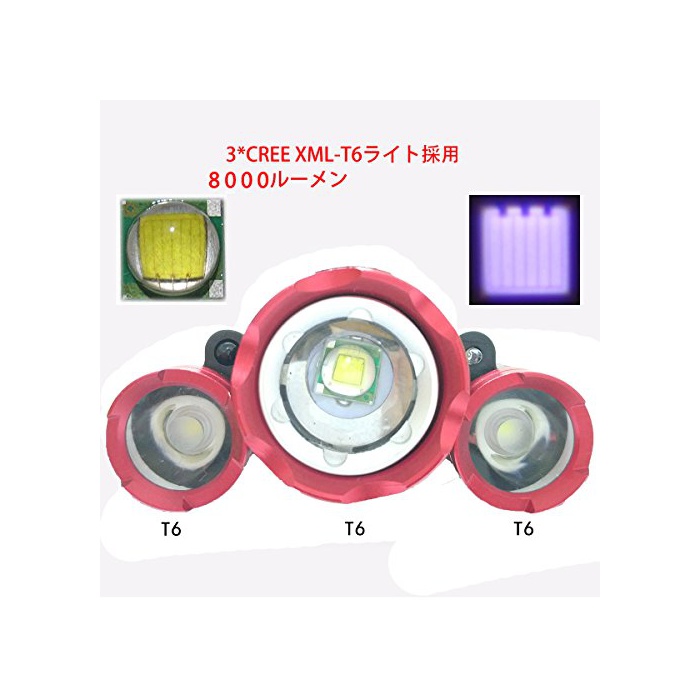 【초높음 휘도】충전식LED헤드라이트가 3x CREE XM-L T6LED팁(칩)를 사용하고, 3등에 8000루멘의 고휘도를 제공합니다.최대 범위:200-500M