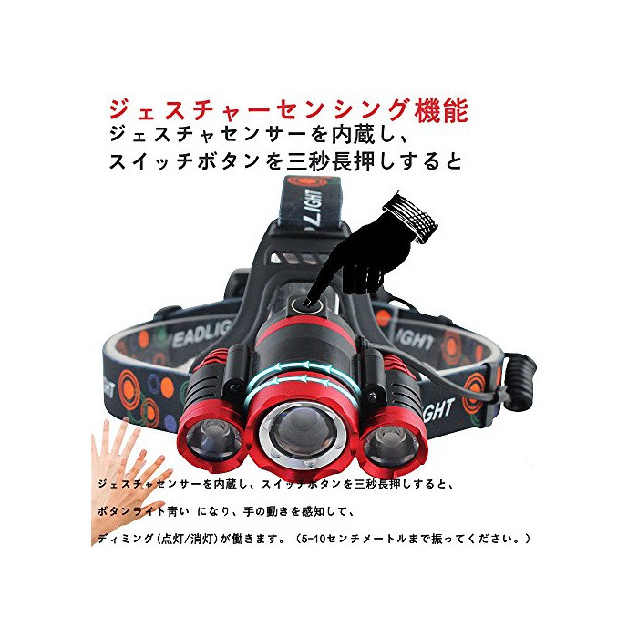 Zhenwei ZHENWEI 5000루멘 LED헤드라이트 충전식 제스쳐 sensing 푸 포커스 조정가 3*CREE XM-L T6 【실용 점등4.5-8시간】4종의 점등 모드 등산 낚시 아웃