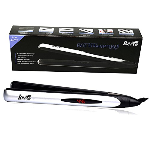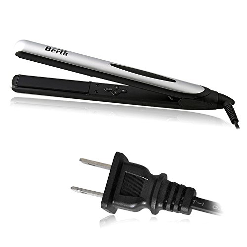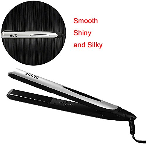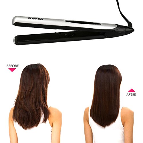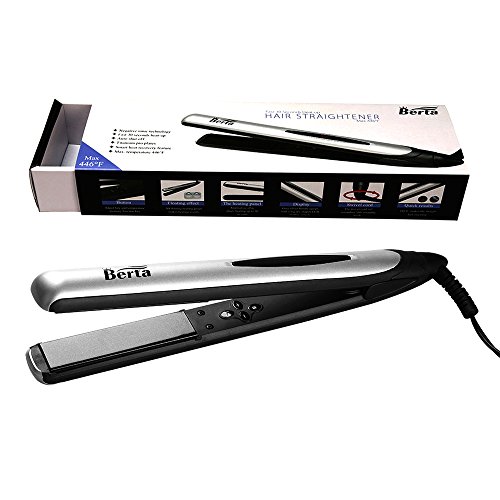 Title : Berta Professional Hair Straightener 1inch 3D Floating Plate Hair Flat Iron, Silver