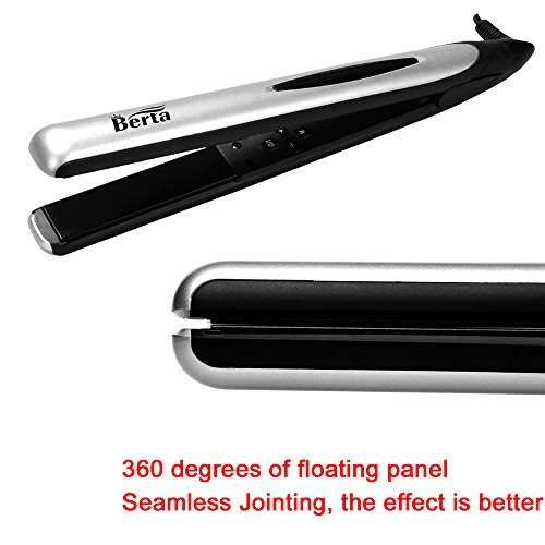 Feature : 1 inch (24x90mm) plate, wide enough for any hair length and hair types, yet narrow enough for bangs. / The 3D floating plate, it flexible follow the force direction, the hair and the plate could combine friendly, make the hair feel the heat better. / Auto shut off after 60 minutes when you don't touch it. / 360 degree tangle swivel with 1.8m salon length power cord. / Berta professional hair flat iron, One-year replacement, two-year-warranty.