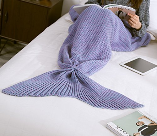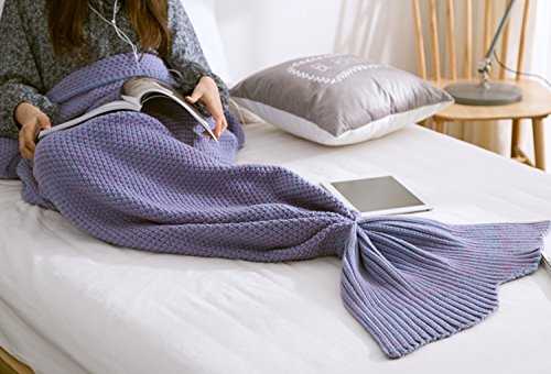Title : iSunShine® Mermaid Tail Blanket Crochet for Kids and Adult, All Seasons Soft Knitted Blanket Sleeping Bag, 32"x71", Purple