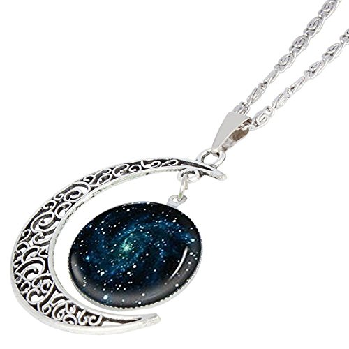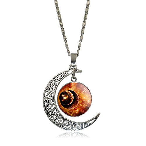 -. Title : Linsh Dome Moon Time Gems Pendant Necklaces Hollow Out Carved Moon Stars Pendant