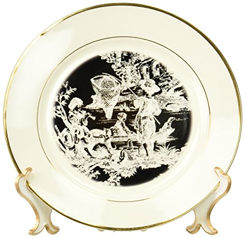 3dRose cp_28350_1 French Toile-Porcelain Plate, 8-Inch