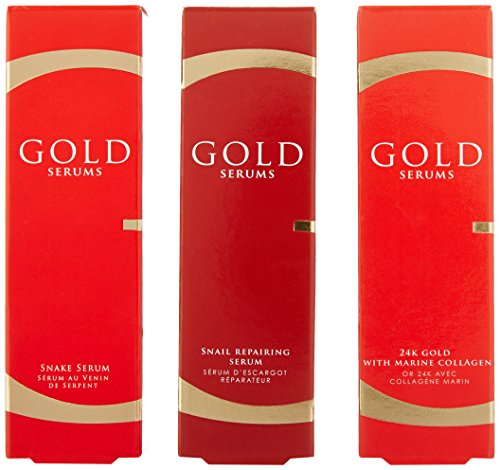 -. Title : Gold Serums Bag Set 24k with Marine Collagen, Gold Snake Serum, Snail Repairing Serum, 1.01 Fl. Oz. Each
