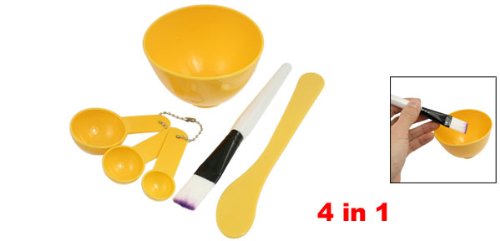 -. Title : Rosallini Woman Cosmetic 4 in 1 DIY Facial Mask Bowl Brush Stick Measuring Spoon Yellow