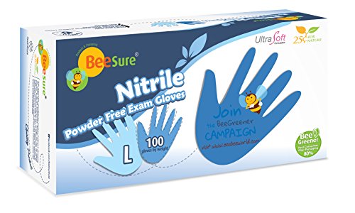 BeeSure BE1118case Powder Free Exam Gloves, Nitrile, Beaded-Cuff, Large, Blue (Pack of 1000)
