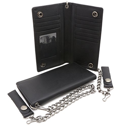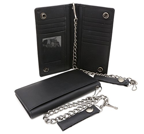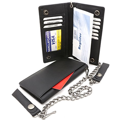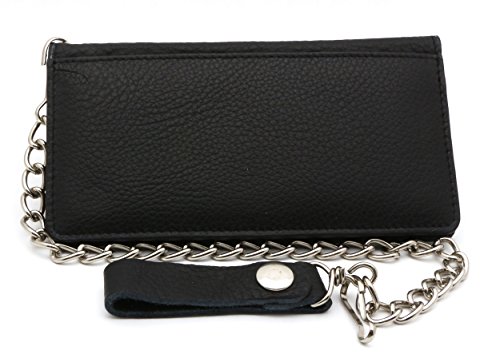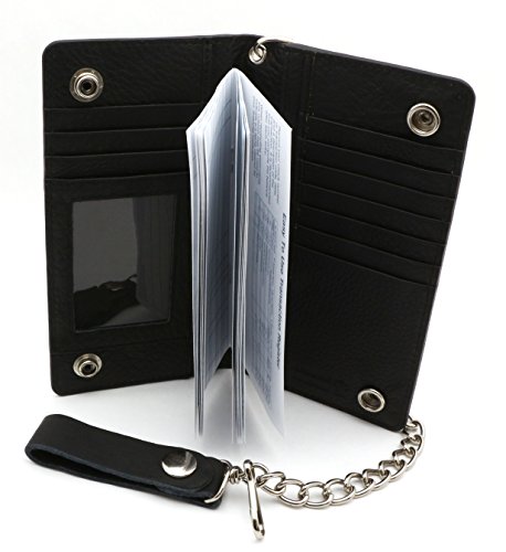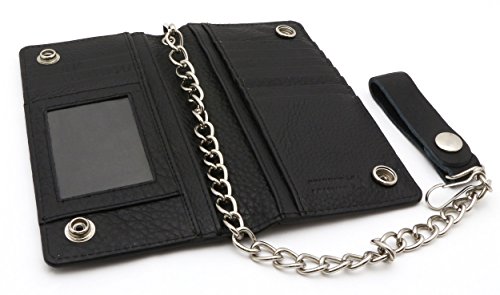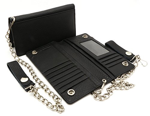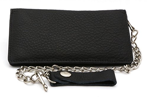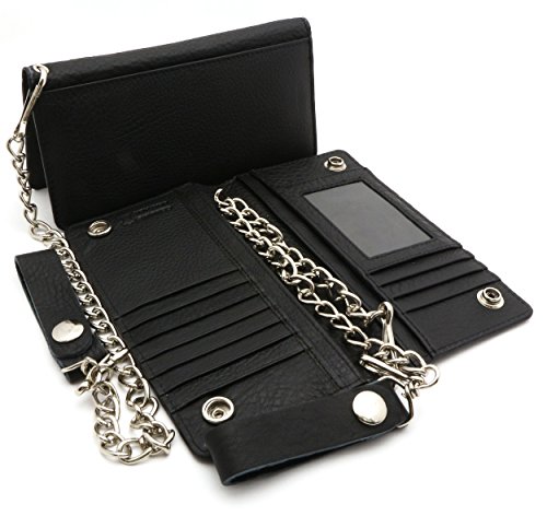 -. Title : Bifold Black Genuine Leather Checkbook Holder Snap Button Wallet with a Chain