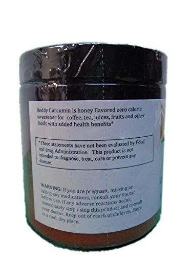 Studio : Reddy Naturals Publisher : Reddy Naturals Binding : Grocery Product Description REDDY curcumin is a low-calorie sweetener with combined properties of curcumin, honey and erythritol. While there are many ways to incorporate curcumin?into diet, one of the delicious ways is by making curcumin tasty sweetener. REDDY curcumin sweetener is best for beverages, juices, salad dressing, soup, smoothies, cereals, fruits and other food applications. Consumer awareness about low calorie sweeteners coupled with curcumin health benefits are prompting to create demand for REDDY curcumin. Product information: 1. Golden sweet powder 2. Tasty low-calorie sweetener 3. Easy to handle 4. Mixes well to make curcumin beverages 5. Made with natural, non-GMO and high quality ingredients 6. Gluten free and 100% vegan 7. Provides many therapeutic benefits of turmeric. 0