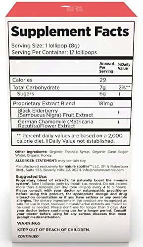 Immune Soothie All-Natural Lollipop, Black Elderberry and Chamomile (Pack of 12)