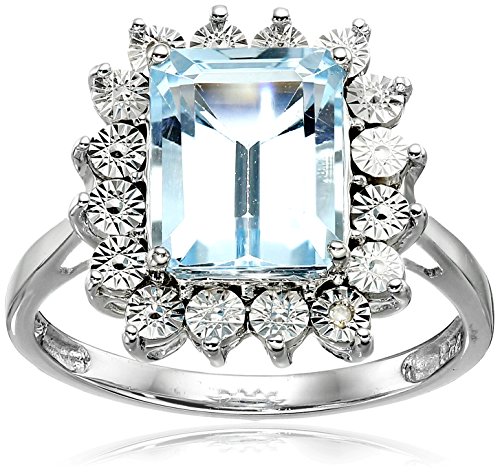 Sterling Silver Sky Blue Topaz and Diamond Ring, Size 7
