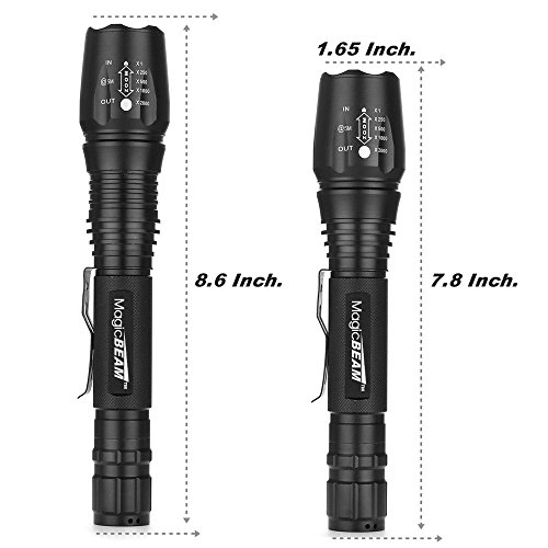 - LATEST TECHNOLOGY: Super Bright LED Tactical Flashlight Military Grade with 5-Mode Zoom Function, Zoom Lens with Focus, Latest Generation of CREE XM-T6 LED chip (MADE IN USA)